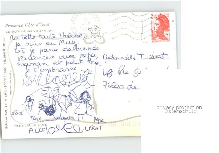 12921770 carte postale Le Muy Allees Victor Hugo postalisch gelaufen Erhaltung siehe scans [NatalD47] KatCode: 11170083183086