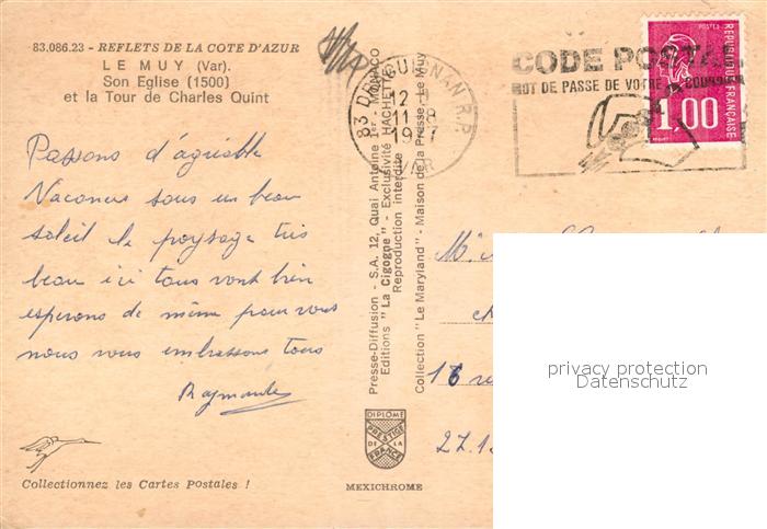 13513553 carte postale Le Muy Son Eglise et la Tour de Charles Quint postalisch gelaufen Erhaltung siehe scans [WerneD78] KatCode: 11170083183086