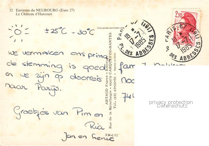 13326054 carte postale Le Neubourg Chateau d Harcourt Schloss postalisch gelaufen Erhaltung siehe scans [FriedD77] KatCode: 11170027327428