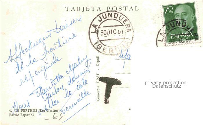 74113569 old postcard Le Perthus La Junquera Gerona ES Barrio Espanol postalisch gelaufen Erhaltung siehe scans [SanaeD93] KatCode: 11510