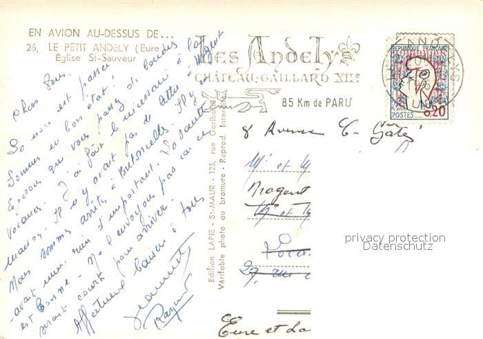 13711426 Le Petit Andely Fliegeraufnahme Eglise St. Sauveur postalisch gelaufen Erhaltung siehe scans [LiesaD40] carte postale Lies Katcode 11170027127016
