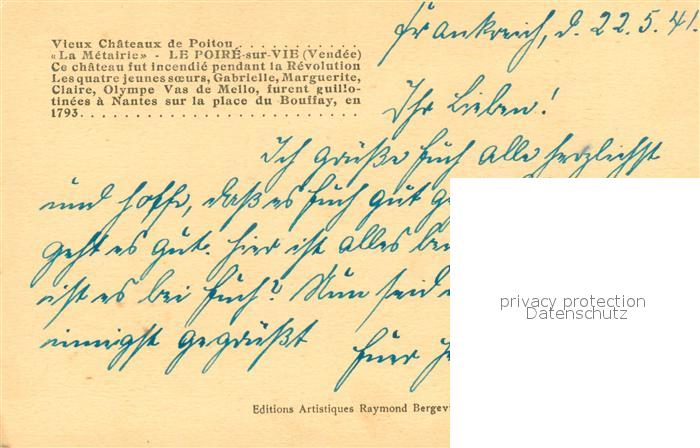 13702222 Le Poire-sur-Vie Vieux Chateaux de Poitou postalisch nicht gelaufen Erhaltung siehe scans [FriedD77] Frie Katcode 11170085285178