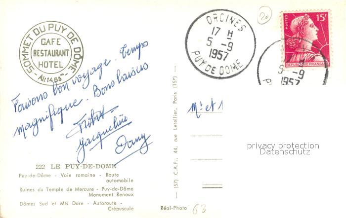 13531673 carte postale Le Puy de Dome Ruines du Temple de Mercure postalisch gelaufen Erhaltung siehe scans [LiesaD40] KatCode: 11170063263065