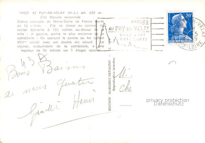 13536074 carte postale Le Puy-en-Velay Eglise Statue de Notre Dame de France postalisch gelaufen Erhaltung siehe scans [FriedD77] KatCode: 11170043243157