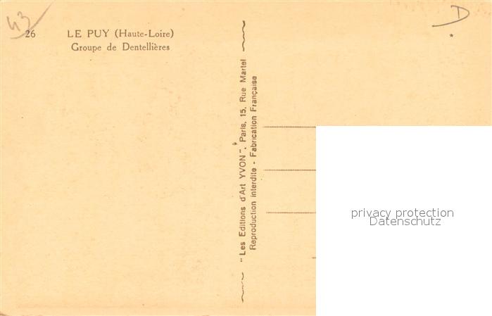 13621219 Le Puy-en-Velay Groupe de Dentellieres postalisch nicht gelaufen Erhaltung siehe scans [WerneD78] Wern Katcode 11170043243157
