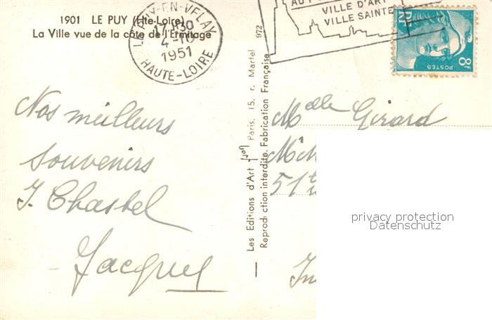 13594298 Le Puy-en-Velay La ville vue de la côte de l’Ermitage postalisch gelaufen Erhaltung siehe scans [FriedD77] carte postale Frie Katcode 11170043243157