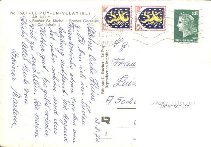 12342889 carte postale Le Puy-en-Velay Rocher Saint Michel Cathedrale postalisch gelaufen Erhaltung siehe scans KatCode: 11170043243157