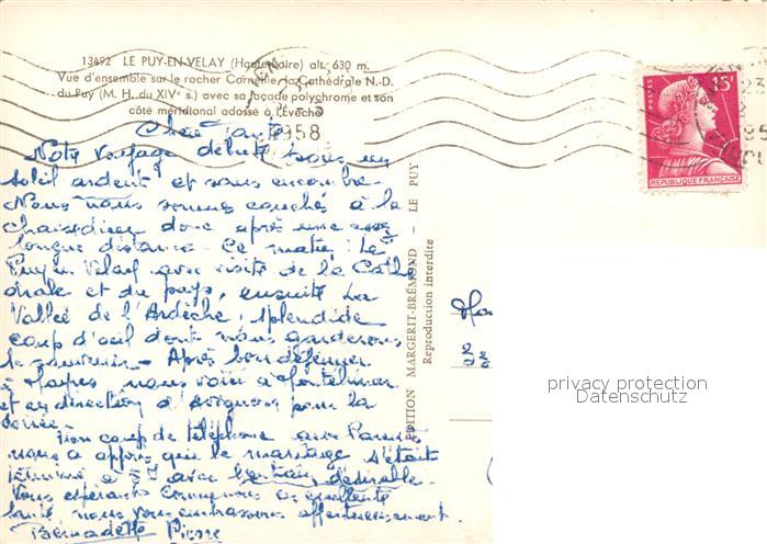 13577899 carte postale Le Puy-en-Velay Vue d’ensemble sur le rocher Corneille la Cathedrale ND du Puy postalisch gelaufen Erhaltung siehe scans [WerneD78] KatCode: 11170043243157