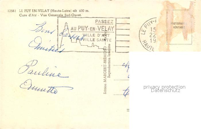 13532011 carte postale Le Puy-en-Velay Vue Genarale Sud-Ouest postalisch gelaufen Erhaltung siehe scans [LiesaD40] KatCode: 11170043243157