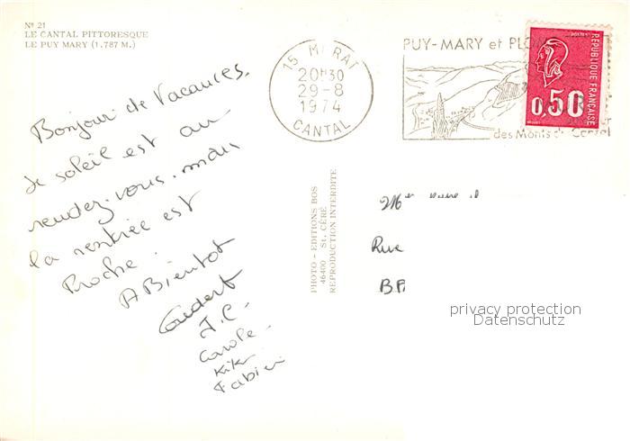 13786570 Le Puy-Mary Montagne 1787m 15 Cantal Berg-Ansicht postalisch gelaufen Erhaltung siehe scans [LiesaD40] carte postale Lies Katcode 11170015315050