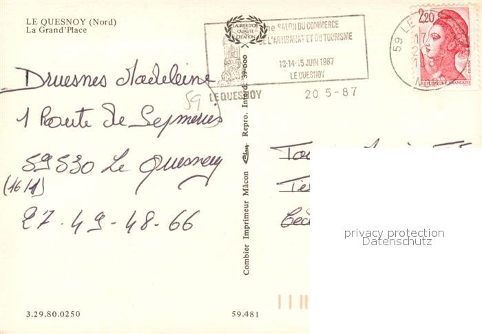 13263974 carte postale Le Quesnoy Nord La Grand Place postalisch gelaufen Erhaltung siehe scans [WerneD78] KatCode: 11170059159481
