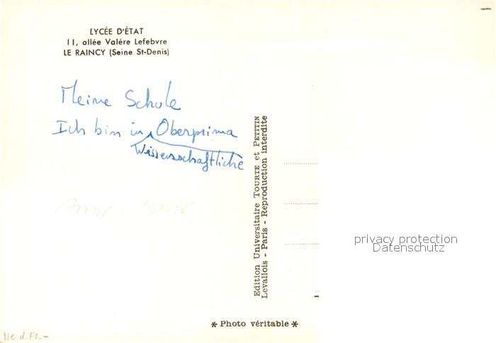 13237313 Le Raincy Lycée d Etat postalisch nicht gelaufen Erhaltung siehe scans [FriedD77] KatCode: 11170093293062