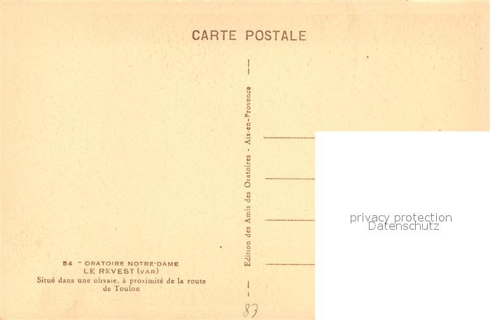 13553002 Le Revest-les-Eaux Oratoire Notre Dame postalisch nicht gelaufen Erhaltung siehe scans [LiesaD40] KatCode: 11170083283103