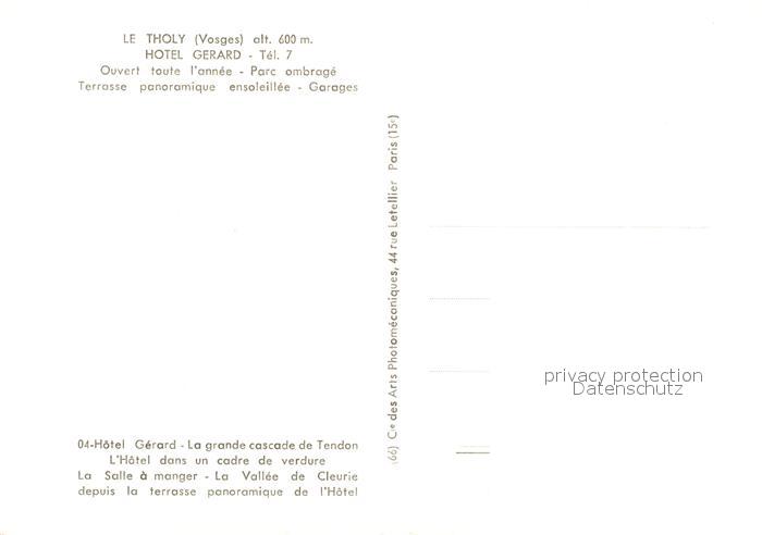 13354718 Le Tholy Hotel Gerard Parc ombrage Terrasse panoramiqueensoleillee Garages postalisch nicht gelaufen Erhaltung siehe scans [WerneD78] KatCode: 11170088188470