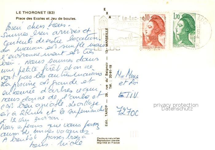 13831842 Le Thoronet 83 Var Place des Ecoles et Jeu de boules postalisch gelaufen Erhaltung siehe scans [FriedD77] carte postale Frie Katcode 11170083183136