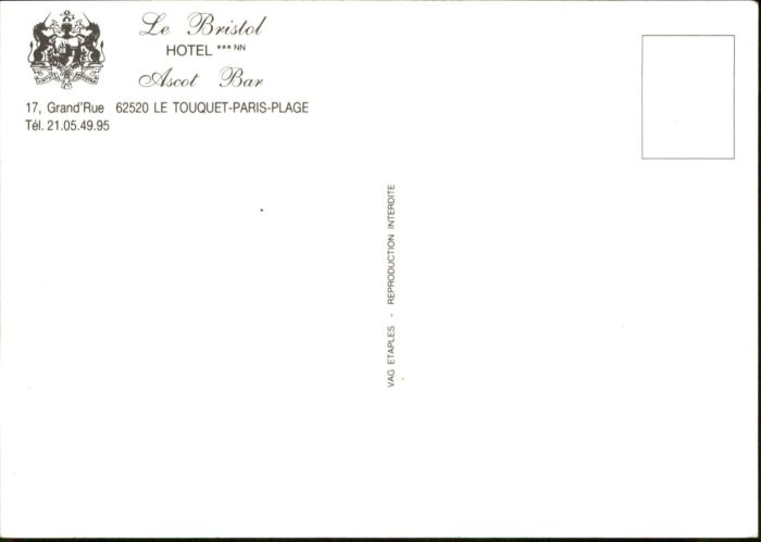 10795202 Le Touquet Hotel Le Bristol postalisch nicht gelaufen Alte Ansichtskarte Postkarte Katcode 11070031004427