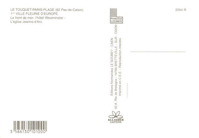 13948494 Le Touquet-Paris-Plage 62 Pas-de-Calais Front de mer Hôtel Estminster Eglise Jeanne d’Arc postalisch nicht gelaufen Erhaltung siehe scans [FriedD77] Frie Katcode 11170062462826