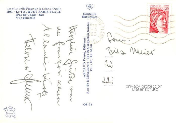 13165697 carte postale Le Touquet-Paris-Plage Vue generale postalisch gelaufen Erhaltung siehe scans [WerneD78] KatCode: 11170062462826