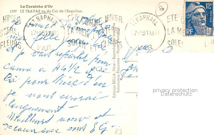 13484988 carte postale Le Trayas 83 Var Vu du Col de l’Esquillon Corniche d Or Cote d’Azur postalisch gelaufen Erhaltung siehe scans [FriedD77] KatCode: 11170083183118