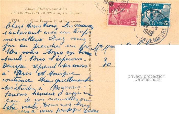 13825616 Le Treport 76 Le Quai Francois 1er et les passeurs postalisch gelaufen Erhaltung siehe scans [WerneD78] carte postale Wern Katcode 11170076176711