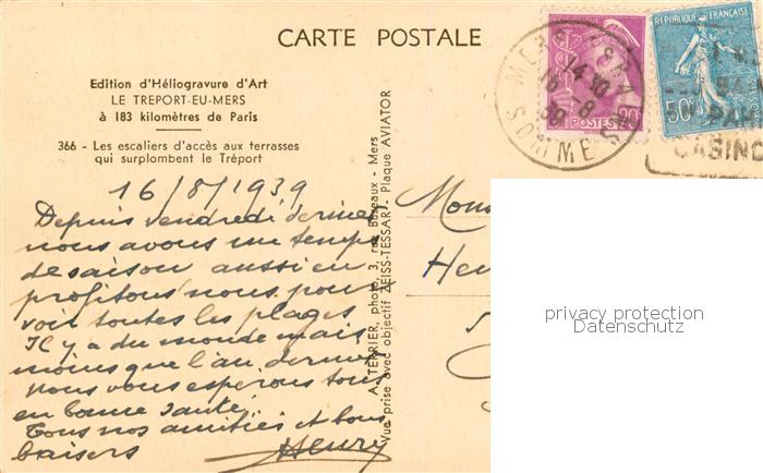 13799781 Le Treport 76 Les escaliers d’acces aux terrasses qui surplombent le Treport postalisch gelaufen Erhaltung siehe scans [WerneD78] carte postale Wern Katcode 11170076176711