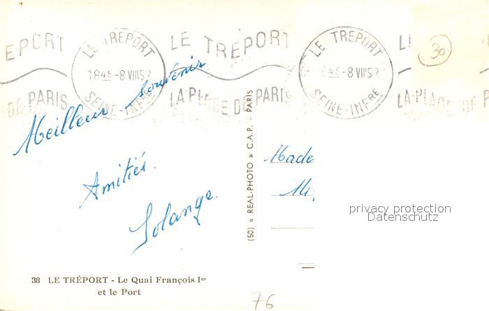 13487252 carte postale Le Treport Port et Quai Francois 1. postalisch gelaufen Erhaltung siehe scans [LiesaD40] KatCode: 11170076176711