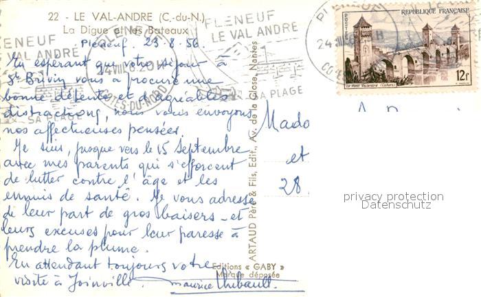13130638 carte postale Le Val Andre Hafen Segelboote postalisch gelaufen Erhaltung siehe scans [KathaD81] KatCode: 11170022422186