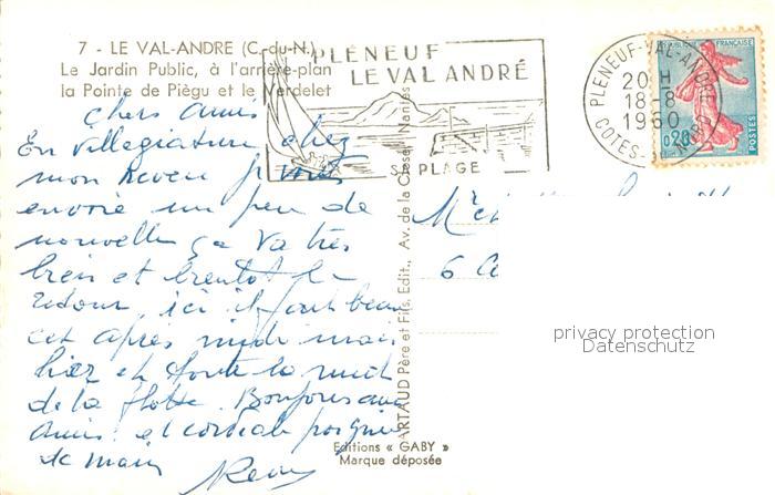 13622314 Le Val Andre Jardin Public Pointe de Piègu et le Verdelet postalisch gelaufen Erhaltung siehe scans [FriedD77] carte postale Frie Katcode 11170022422186