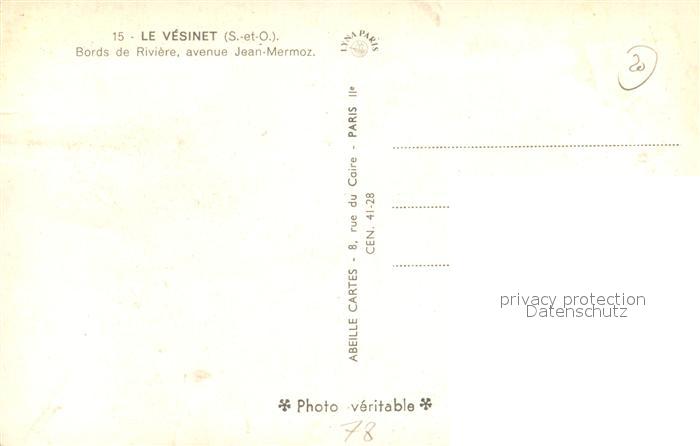 13484510 Le Vesinet Bords de Rivi?re avenue Jean-Mermoz postalisch nicht gelaufen Erhaltung siehe scans [LiesaD40] KatCode: 11170078378650