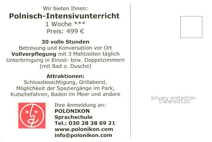 Leba Polnisch Intensivkurse im Schloss Saino postalisch nicht gelaufen Werbekarte (keine Postkarte) Erhaltung siehe scans [LiesaD40]