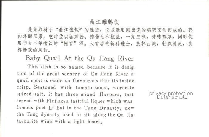 Lebensmittel Baby Quail Qu Jiang River China postalisch nicht gelaufen Erhaltung siehe scans