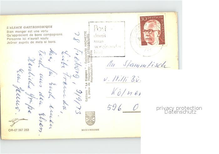 alte Postkarte Lebensmittel Choucroute garnie Alsace postalisch gelaufen Erhaltung siehe scans