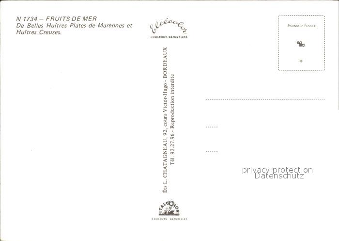 Lebensmittel Huitres Austern Marennes Oleron postalisch nicht gelaufen Erhaltung siehe scans