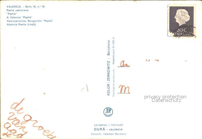 alte Postkarte Lebensmittel Paella Valenciana Valencia postalisch gelaufen Erhaltung siehe scans
