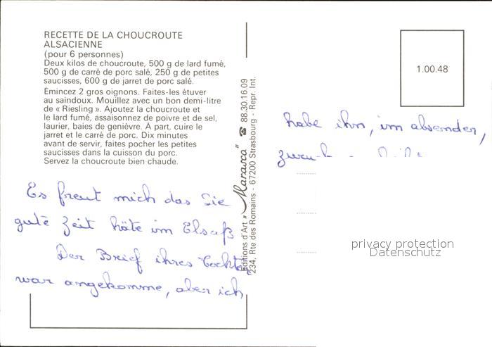 Lebensmittel Recette Choucroute Alsacienne Kinder Trachten postalisch nicht gelaufen Erhaltung siehe scans