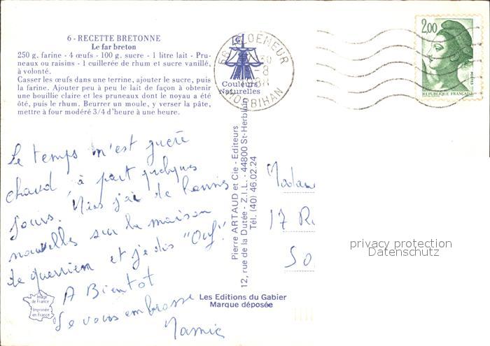 alte Postkarte Lebensmittel Recette du Far Breton postalisch gelaufen Erhaltung siehe scans