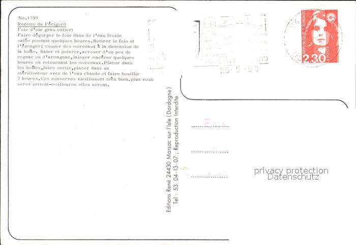 alte Postkarte Lebensmittel Recette Foie d oie gras entier postalisch gelaufen Erhaltung siehe scans