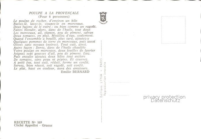 Lebensmittel Recette Poulpe a la provencale postalisch nicht gelaufen Erhaltung siehe scans