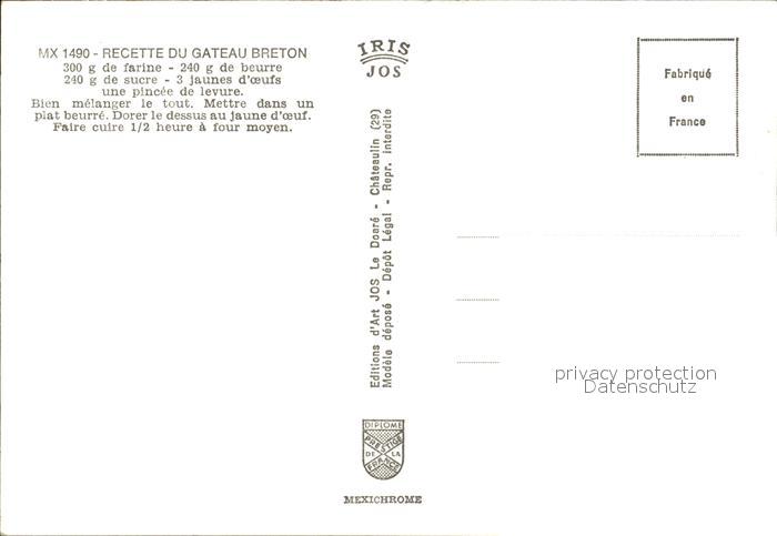 Lebensmittel Rezept Recette Gateau Breton postalisch nicht gelaufen Erhaltung siehe scans
