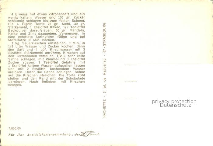 Lebensmittel Rezept Schwarzwaelder Kirschtorte postalisch nicht gelaufen Erhaltung siehe scans