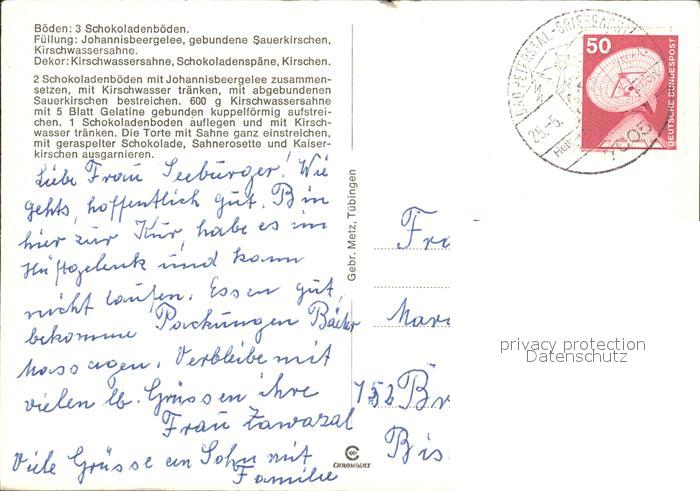 alte Postkarte Lebensmittel Rezept Schwarzwaelder Kirschtorte postalisch gelaufen Erhaltung siehe scans