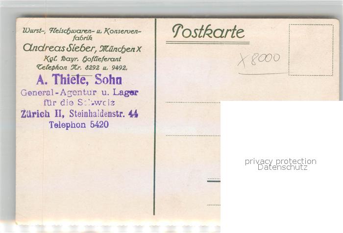 42928757 Lebensmittel Wurst- Fleischwaren- und Konservenfabrik Andreas Sieber München Schinken Wein Litho KatCode 22280