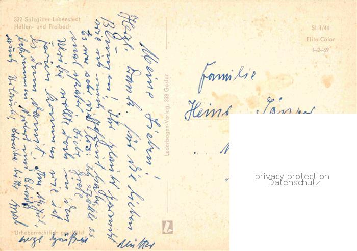 72790635 Lebenstedt Freibad postalisch nicht gelaufen Erhaltung siehe scans [LiesaD40] KatCode: 11110003102000