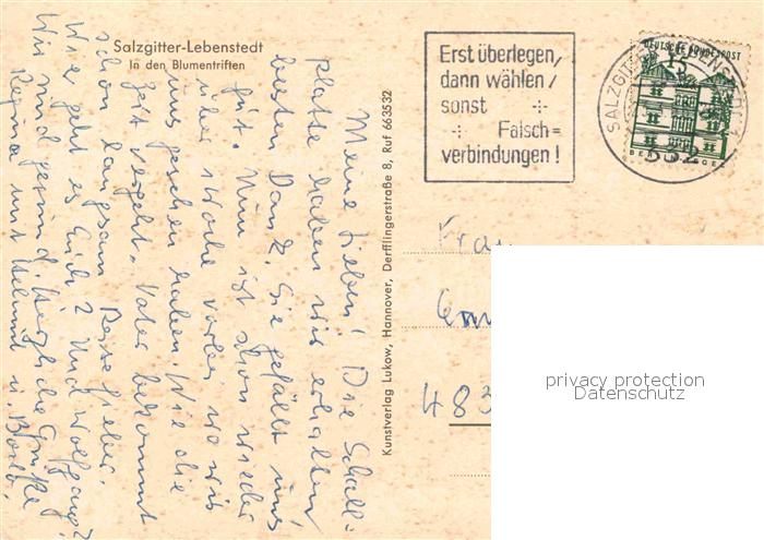 72714667 alte Postkarte Lebenstedt Salzgitter In den Blumentriften postalisch gelaufen Erhaltung siehe scans [FriedD77] KatCode: 11110003102000