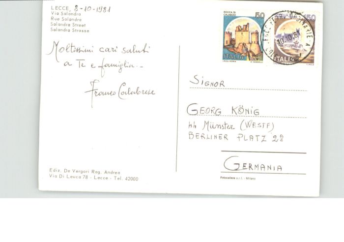 old postcard Lecce Via Salandra Strasse postalisch gelaufen