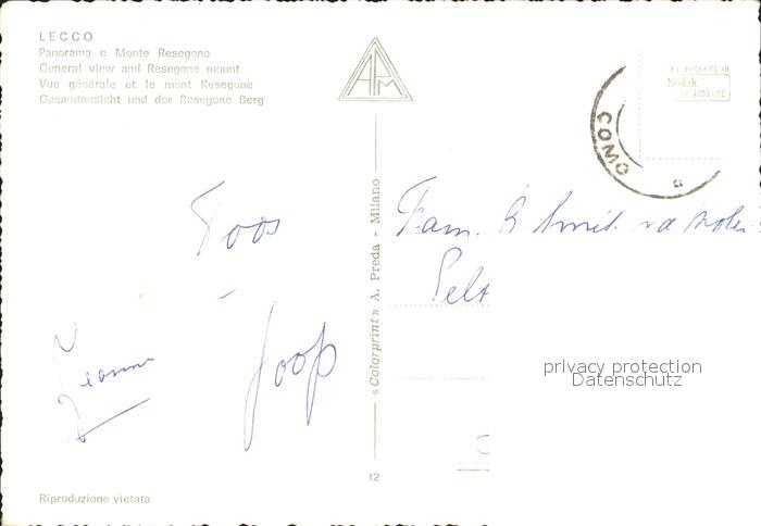 old postcard Lecco mit Monte Resegone postalisch gelaufen Erhaltung siehe scans