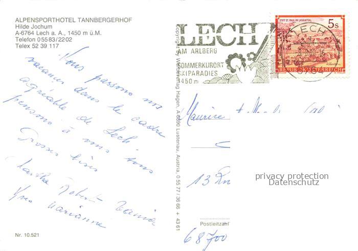 74042454 alte Postkarte Lech Vorarlberg AT Alpensporthotel Tannbergerhof Gastraum postalisch gelaufen Erhaltung siehe scans [WerneD78] KatCode: 11390341080113