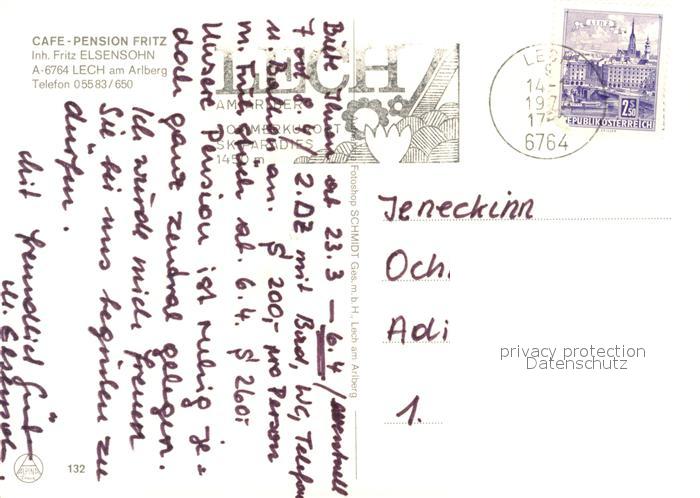 13192446 alte Postkarte Lech Vorarlberg Cafe-Pension Fritz postalisch gelaufen Erhaltung siehe scans [PaolaD17] KatCode: 11390341080113
