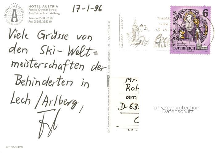 73185189 alte Postkarte Lech Vorarlberg Fliegeraufnahme Hotel Austria postalisch gelaufen Erhaltung siehe scans [LiesaD40] KatCode: 11390341080113