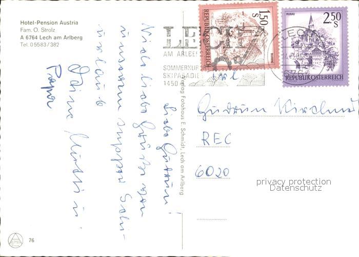 72426198 alte Postkarte Lech Vorarlberg Hotel Pension Austria Wintersportplatz Alpen postalisch gelaufen Erhaltung siehe scans KatCode: 11390341080113